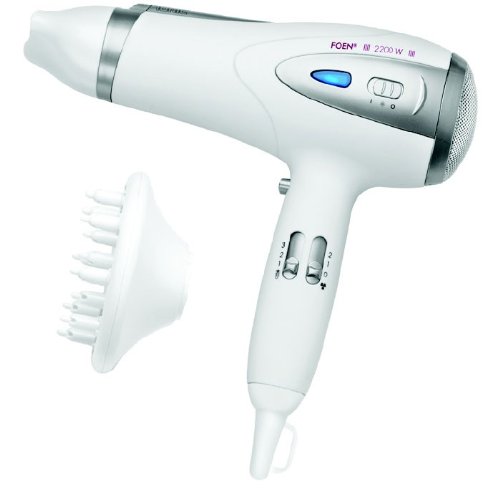 Lassen Sie sich von Preis und Leistung überzeugen! Leistungsstarker Profi-FOEN® in weiß (Soft Touch Gehäuse) aus dem Hause AEG mit praktischen Funktionen und Zubehör für ein Styling wie nach dem Friseurbesuch. Der FOEN® verfügt über 3 Temperatur-/Leistungsstufen, sowie zwei Gebläsestufen. Der professionelle Volumen-Diffusor und die mitgelieferte Formdüse sind 360 Grad drehbar und abnehmbar! Die Ionisierungsfunktion (zuschaltbar) sorgt für eine bessere Frisierbarkeit durch den Anti-Statik Effekt - das Haar trocknet nicht aus und wird geschmeidig und glänzend. Die praktische Cool-Shot Funktion sorgt für ein perfektes Frisurenfinish! SPANNUNGSVERSORGUNG: 230 V, 50 Hz * LEISTUNGSAUFNAHME: 2200W